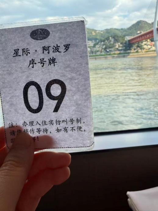 第一天下午16點左右,朝天門碼頭,先在二樓餐廳處休息,按先后順序拿號等著分房卡。