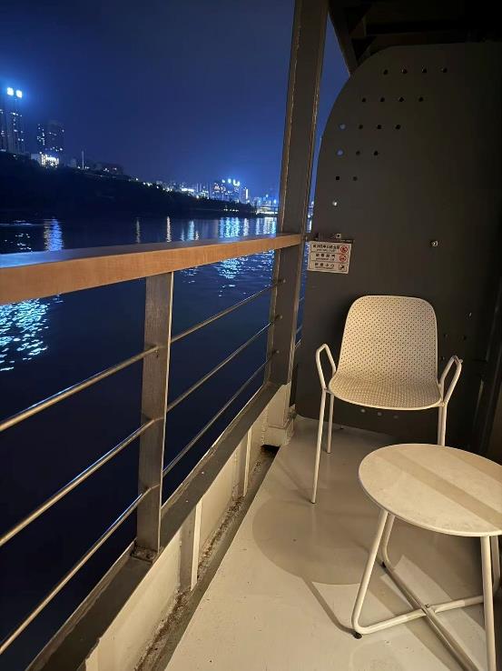 后來在第二天晚上的船長酒會上聽杜船長介紹,阿波羅是長江上第六代豪華三峽遊輪,采用海上遊輪的雙船底設計,噪音和平穩度都非常好,基本感受不到發動的噪音。