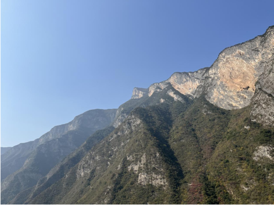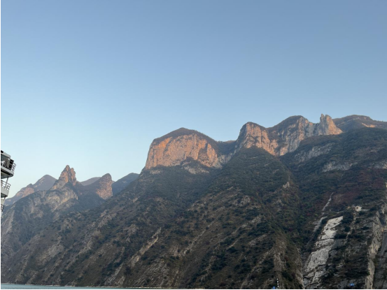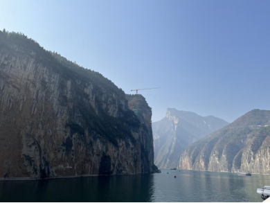 中午,美維凱娜遊輪通過過瞿塘峽,打卡十元人民幣背面圖案“夔門天下雄”。