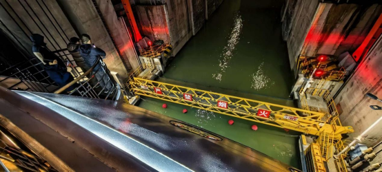 隨著時間一分一秒的推進,船體駛入升船機并緩慢升起,整個過程大概由十五分鐘左右,這艘大船就直線提升了100多米