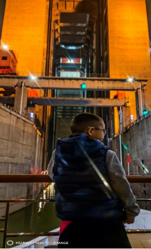 無論對于孩子還是我,還是全船的遊客,這都是一個特別難忘的夜晚,長江探索號的其他行程一般都是白天通過升船機,這次的圣誕之旅我們有幸趕上了探索號在長江的夜色中通過升船機。