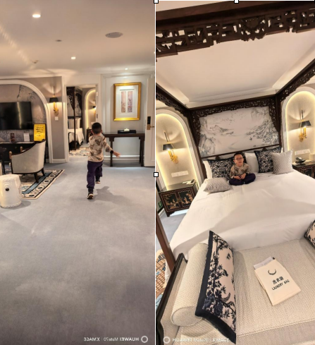 房間配有一張1.8米×2米的四柱雕花大床,總面積105平米,娃幾乎是奔跑來奔跑去無比自由開心。