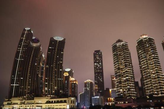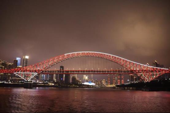 說明會接近尾聲的時候遊輪悄悄起航了,走上六樓的甲板,整個視野忽然就被點亮了,重慶的夜景整的很美,朝天門燈光璀璨,那些我叫不出名字的大橋,每一座都流光溢彩……