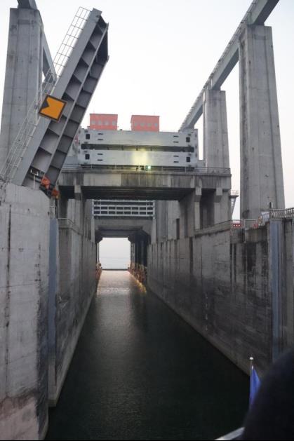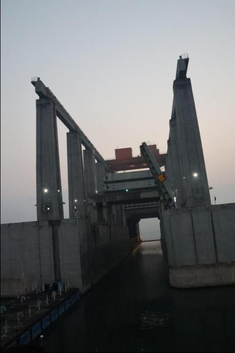 小遊輪緩緩駛進三峽大壩升船機(雖然叫升船機,但我們是從上遊到下遊,所以我們乘船是下降的),這是大國重器,可以讓遊輪坐的電梯。