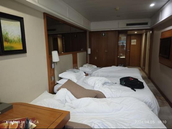 總統7號的陽臺標間房間足夠大,加床不擁擠,國外回來的親戚說洗手間比海輪大多了。最贊的是熱水,出水量不輸五星酒店。