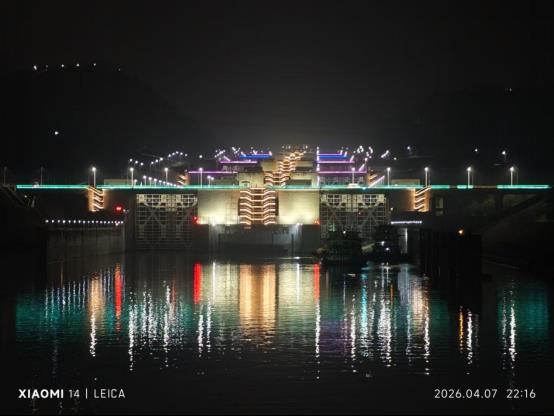 終于見到了三峽大壩五級船閘,夜未央,流光溢彩,真的很美。