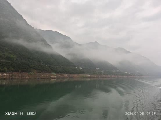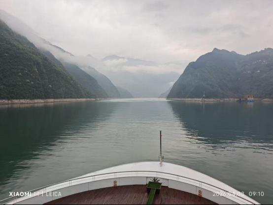 晨起三峽遊輪陽臺外的巫峽迷霧