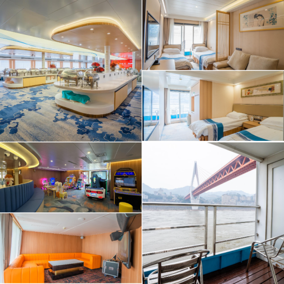 ③看“兒童配套”:長航/總統/黃金系列大部分遊輪都配泳池,大美遊輪華夏系列擁有超大面積的電玩城+兒童樂園,世紀系列和長江奇跡的家庭房童趣滿滿……
