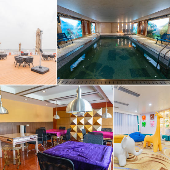 遊輪免費室內恒溫泳池+700㎡多功能演藝大廳自由律動,影院、圖書館、親子樂園、棋牌室、健身房、SPA一應俱全;