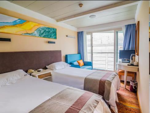 普通遊輪中的豪華遊輪,全船陽臺房,空間較寬敞。